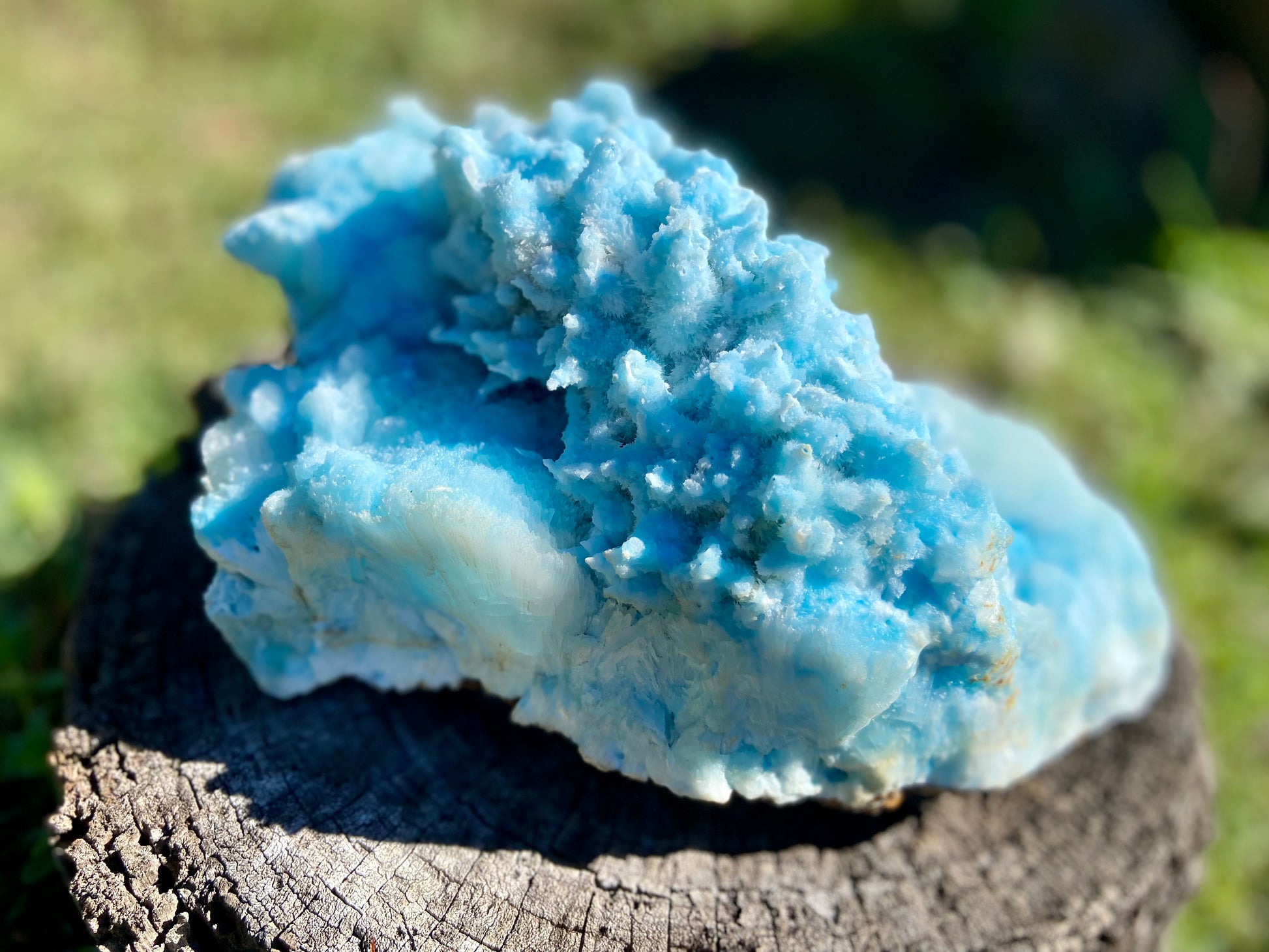The revitalizing and curative powers of Blue Aragonite can motivate profound transformation, awakening within you an enlightened outlook that might open doors to lasting contentment. This gemstone offers more than shallow relief. With steady use, Blue Aragonite can assist in the confrontation of difficult recollections in order to look confidently to the future.