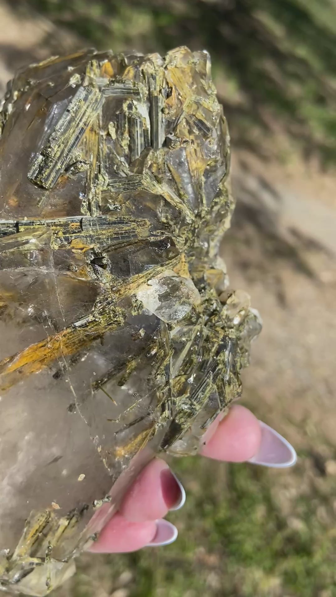 Born from the union of Clear Quartz and rich green Epidote, my crystalline body is a beacon of growth, prosperity, and transformation. I hold the vibrations of the Earth’s primal wisdom, aligning with the devas, nature spirits, and angelic realms. My presence encourages the release of negativity, urging you to shed old patterns and embrace new, luminous ways of being. I am here to guide you through cycles of renewal, to help you evolve, and to bring you into harmony with the greater cosmic flow.