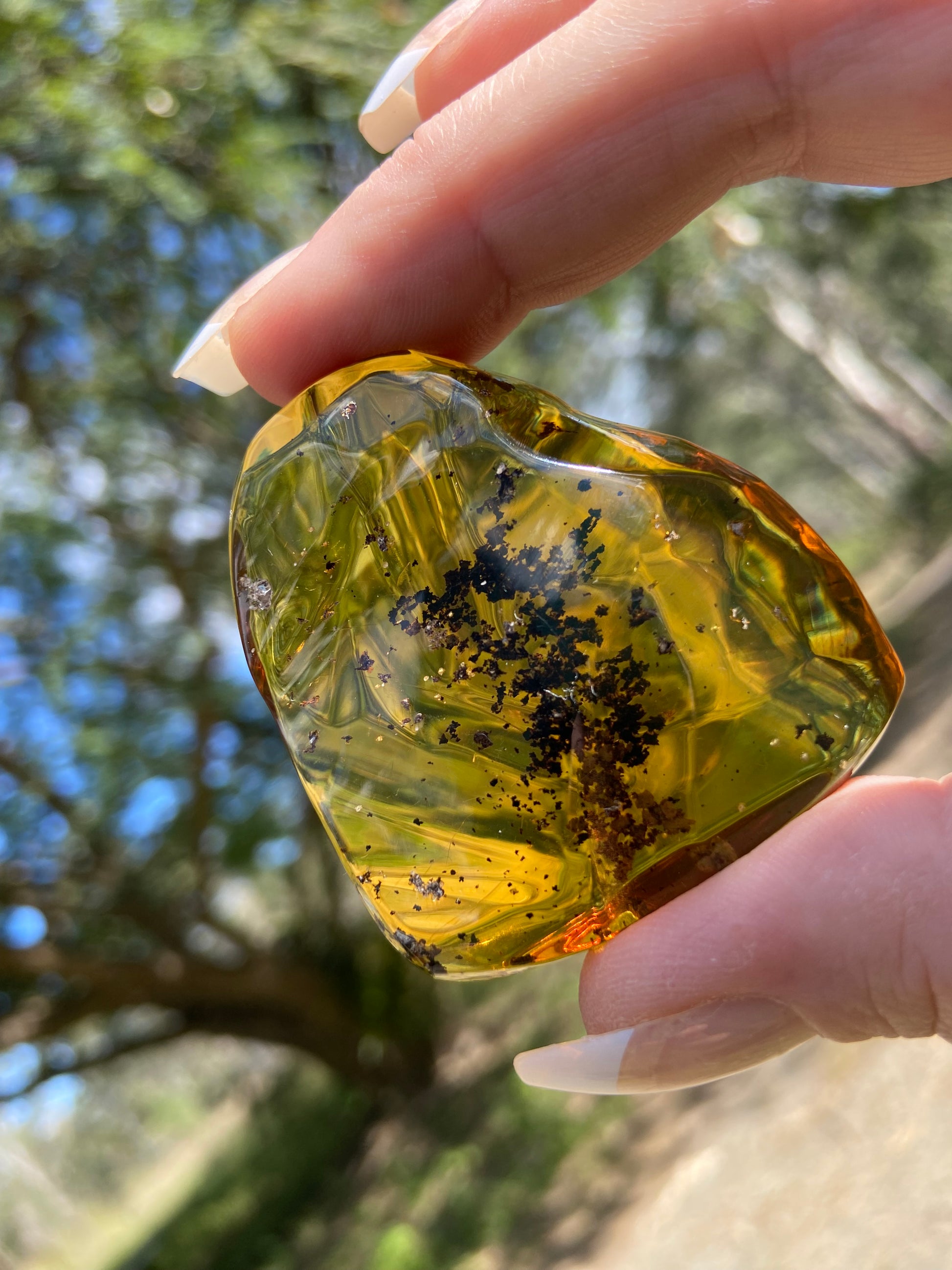 Amber is not strictly a crystal but fossilised resin, belonging to a small class of organic gems, neither a crystal or a mineral, but a biological product straight from Mother Nature. A protective resin that oozed from living trees in a prehistoric forest, fossilising, millions of years ago.